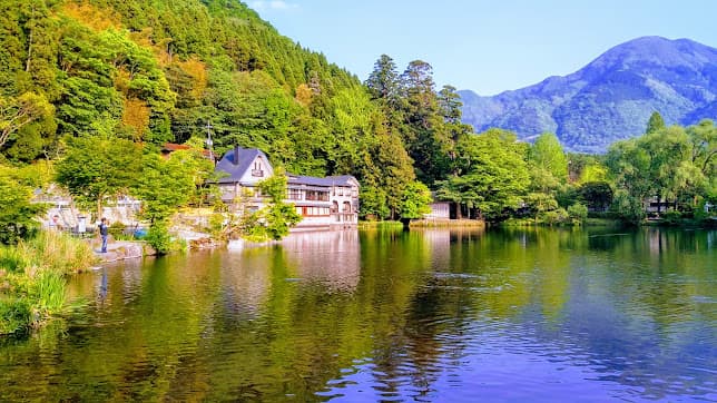 金鱗湖位於大分縣由布市湯布院町,是由布院最具代表性的自然景觀之一,湖名相傳由明治時期儒學者毛利空桑因見夕陽照耀下魚鱗泛金而命名,至今成為象徵由布院的經典地標。湖水同時由清水與溫泉匯入,水溫終年偏高,秋冬清晨常見湖面蒸騰霧氣,營造出夢幻晨霧的唯美景致,極受攝影與親子旅客喜愛。